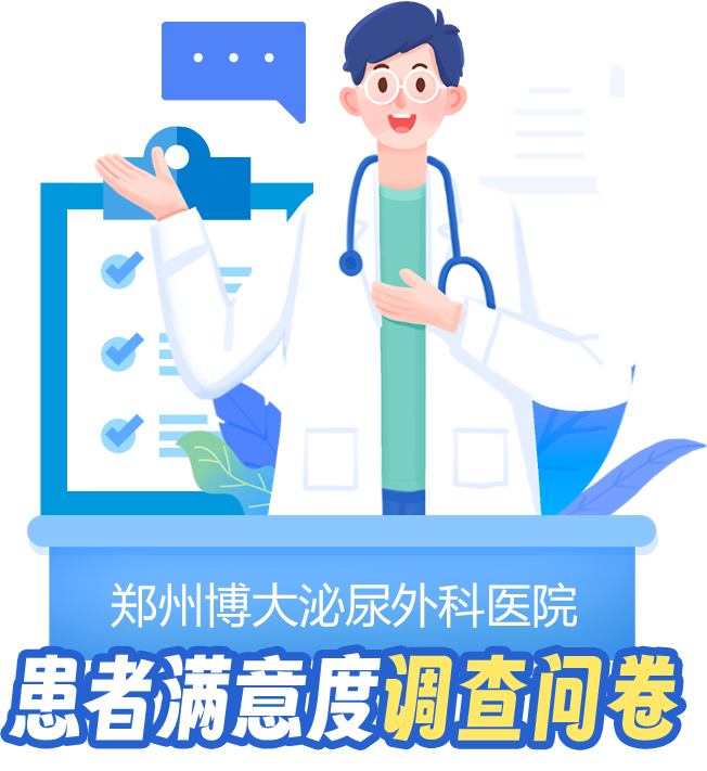 健康一个男人,幸福一个家庭。郑州博大泌尿外科医院将患者满意度调查问卷作为提升医院服务的重要依据之一,将您的的感受和建议告诉我们,我们将竭尽全力想您所想,急您所急。您的意见和建议将起到促进医院提高服务质量与水平的作用,我们承诺对您提供的所有信息严格保密,感谢您的配合及参与!